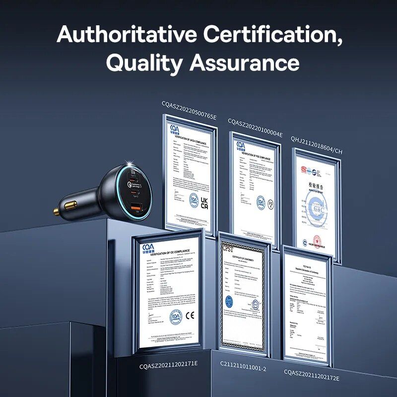 Experience the next-level power of charging with our 160W Multi-Port Fast Charge Car Charger. Whether you’re prepping for an essential business call, gearing up for a road trip, or simply keeping your gadgets ready on a daily commute, this powerhouse ensures you’re always juiced up and ready to go. Boasting state-of-the-art Qualcomm Quick Charge 5.0 technology, this car charger promises to deliver ultra-speedy charging every single time.