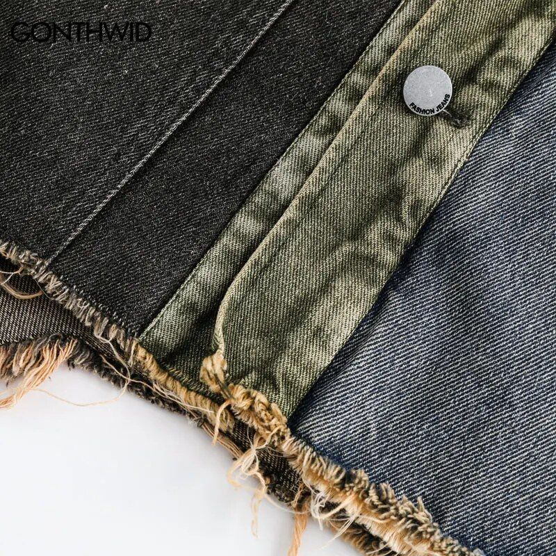 2023 Vintage Plaid Patchwork Denim Jacket – Streetwear Hip Hop Fashion