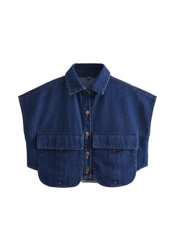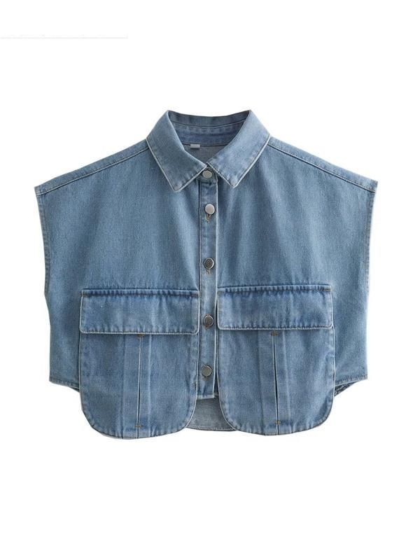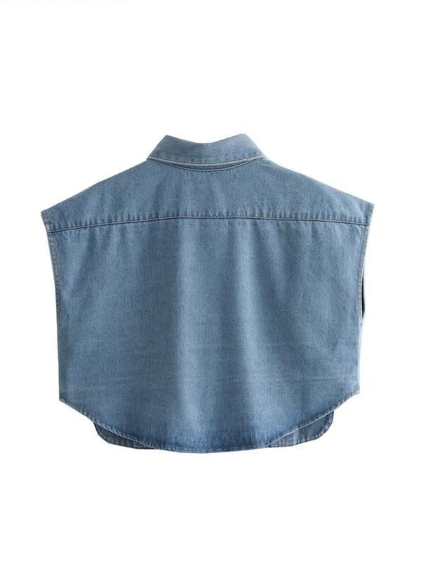 Introducing the perfect fusion of classic denim and modern chic – our Solid Color Sleeveless Denim Crop Shirt is the essential wardrobe staple you’ve been looking for. Designed for the contemporary woman who appreciates a blend of casual sophistication and practicality, this shirt is a testament to timeless fashion. Its solid color and neat silhouette make it a versatile piece for a range of occasions, ensuring you stay in vogue from spring to summer.