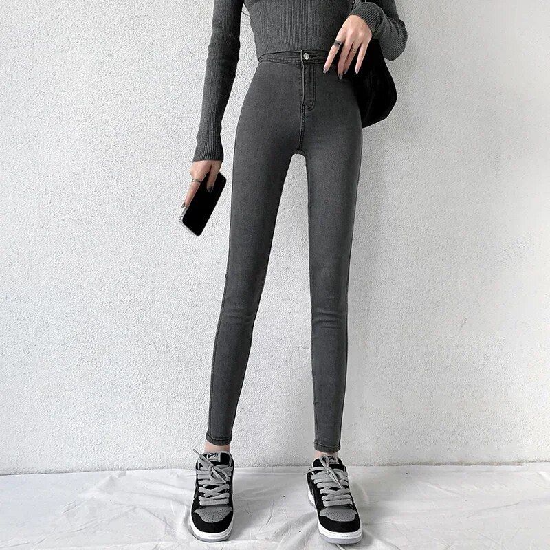 High-Waist Stretch Skinny Jeans – Sexy Gray Denim for Women