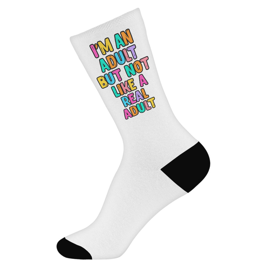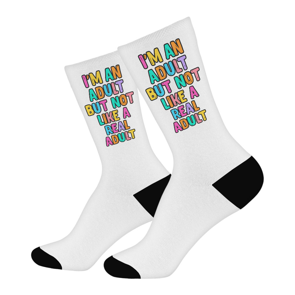 Cushioned foot bottom makes I’m an Adult Socks a sure bet for everyday wear, from work, play, gym, sports, and beyond. These socks are designed to be all-season. This product is made breathable for when it’s warm but thick enough for when it’s cold during the winter.