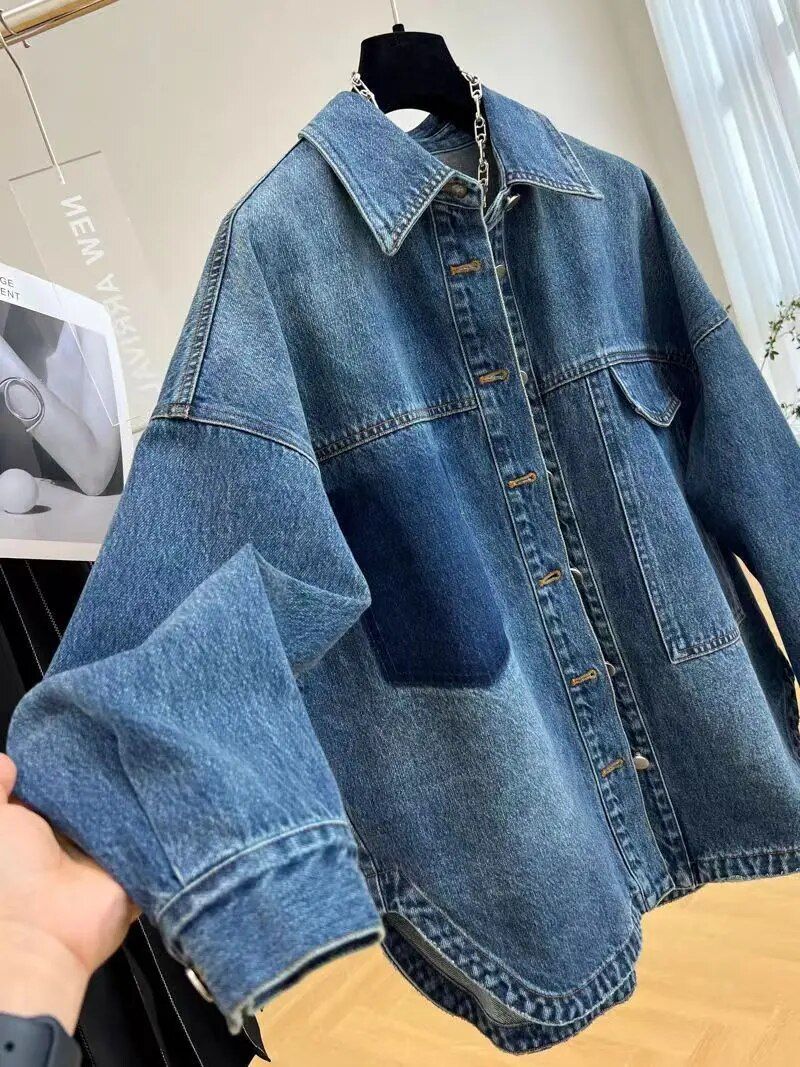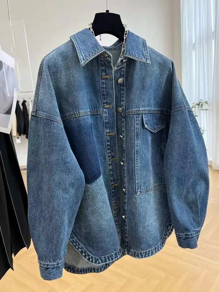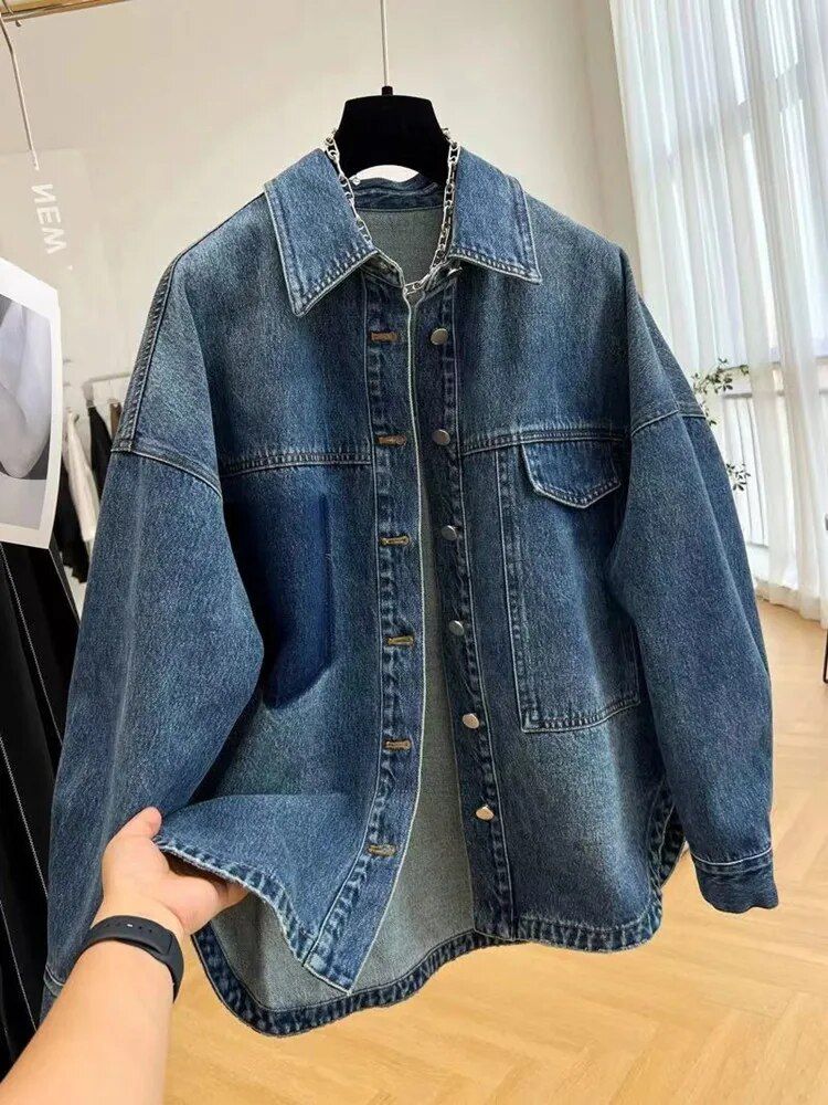 Korean High Street Oversized Denim Jacket – Autumn/Winter Vintage Style