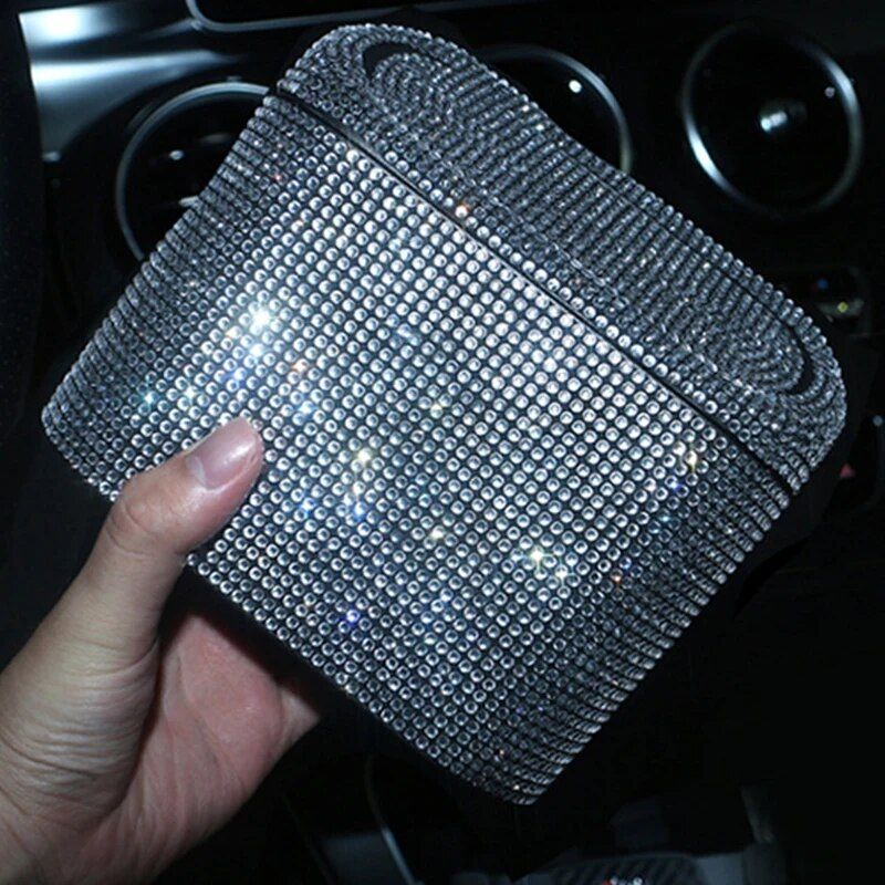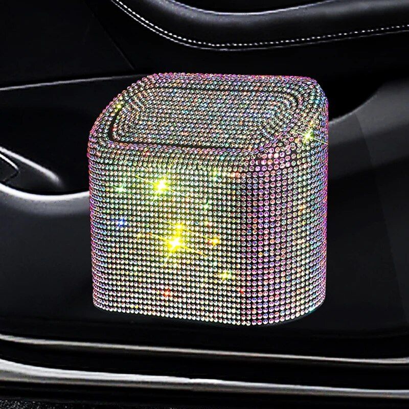 Luxurious Rhinestone Car Trash Bin – Pressing Type Square Storage Bucket