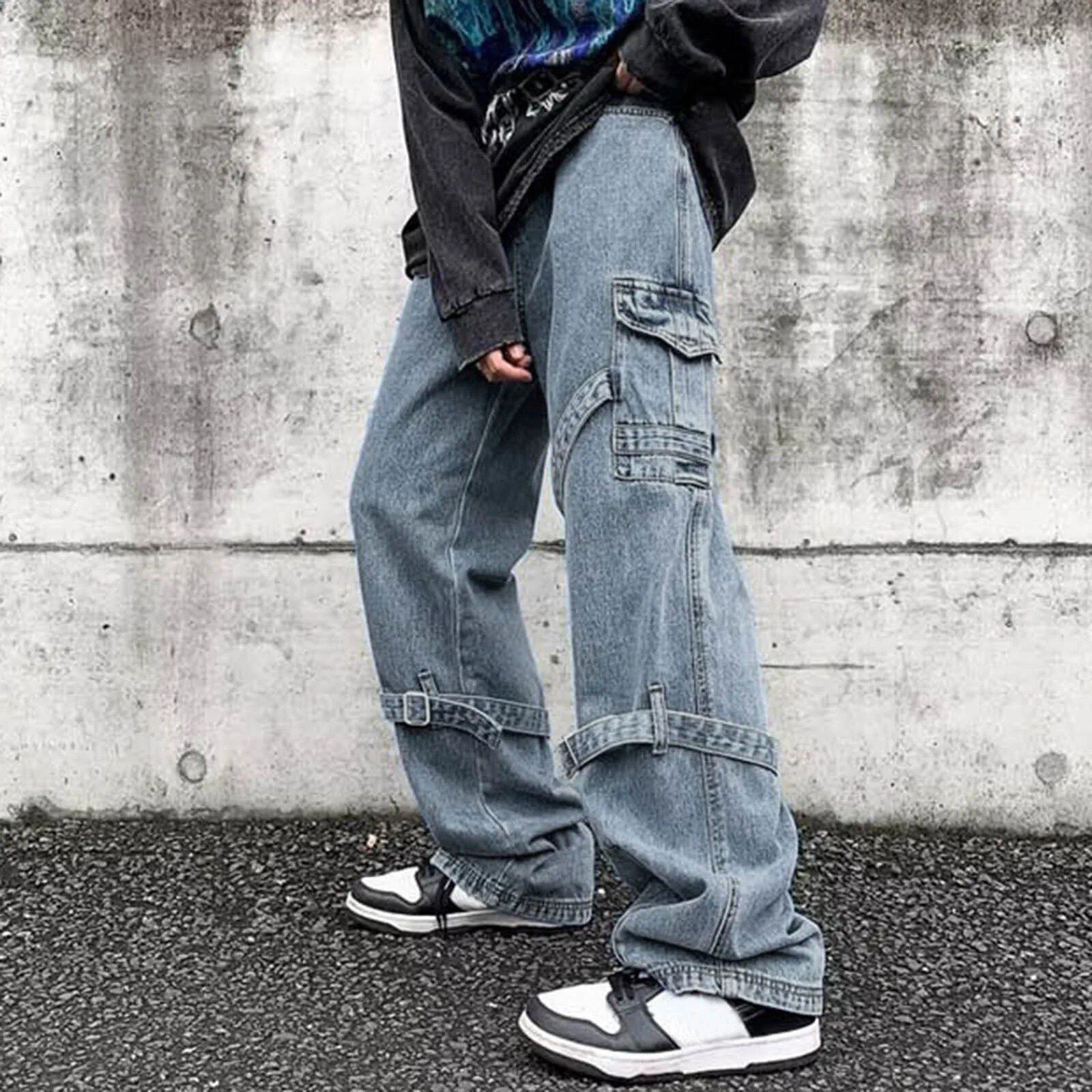 Men’s Baggy Y2K Streetwear Jeans – Hip Hop Denim Straight Leg Trousers