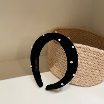 Discover Timeless Elegance Elevate your style with the Elegant Black Velvet Pearl-Embellished Hairband. This exquisite accessory is perfect for women
