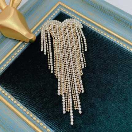 Overview Discover the perfect blend of elegance and sparkle with our Heart Tassel Rhinestone Brooch Pin. Designed to add a