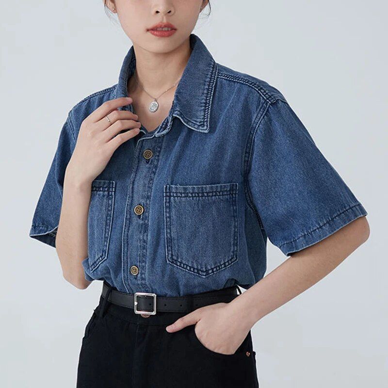 Introducing our Casual Short Sleeve Denim Blouse, the quintessential summer wardrobe staple that promises to deliver both comfort and style for the modern woman. Designed for the trend-savvy, yet comfort-seeking individual, this blouse is perfect for a variety of occasions, from office hours to street side escapades. As the seasons shift, stay ahead of the fashion curve with a top that’s as versatile as it is voguish.