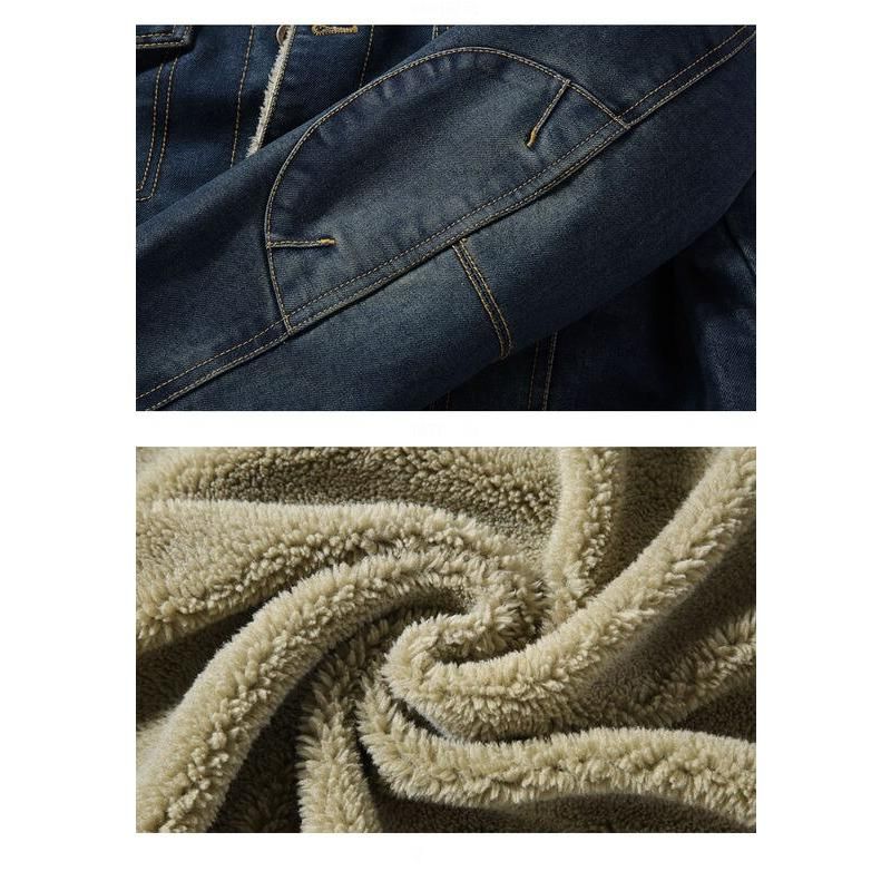 Thick Fleece-Lined Denim Jacket – Men’s Warm Bomber Winter Coat in Plus Sizes