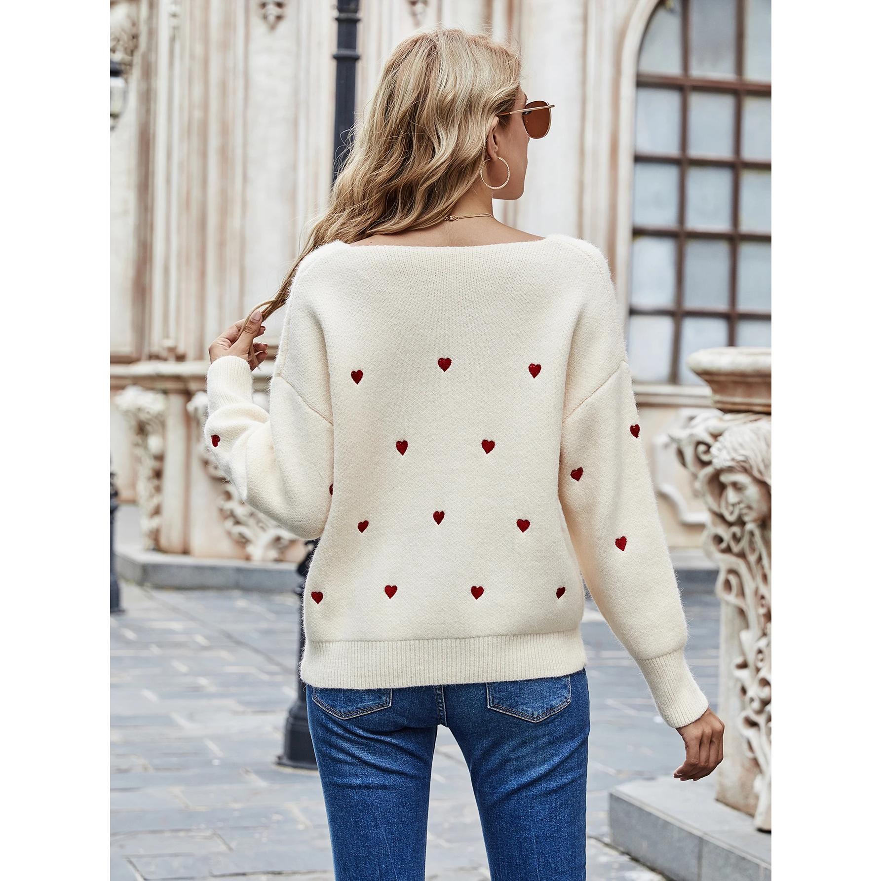 Cozy Up in Style with Our V Neck Embroidery Heart Sweater