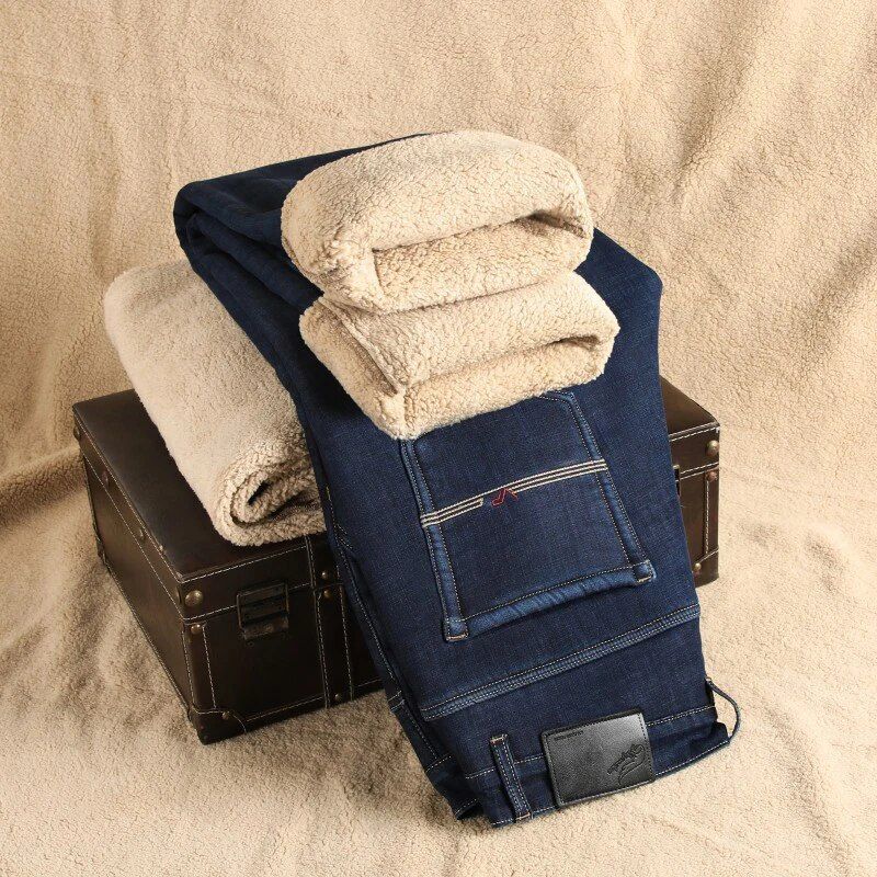 Winter Warm Thick Fleece-Lined Men’s Straight Leg Jeans