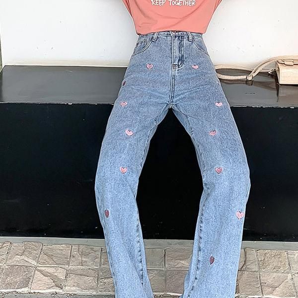 The versatility of these jeans makes them perfect for various occasions. Whether you’re running errands, having a casual lunch with friends, or enjoying a relaxed evening out, these jeans will serve as a reliable fashion staple. Their seasonal flexibility makes them a go-to choice for spring and summer, while the heart embroidery ensures they remain unique and eye-catching year-round.