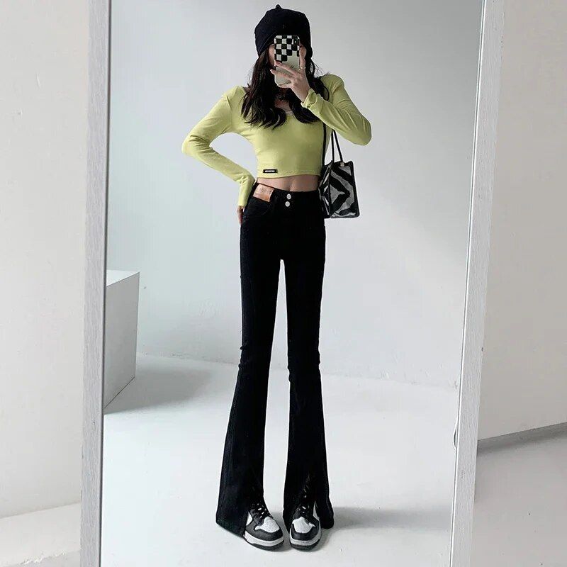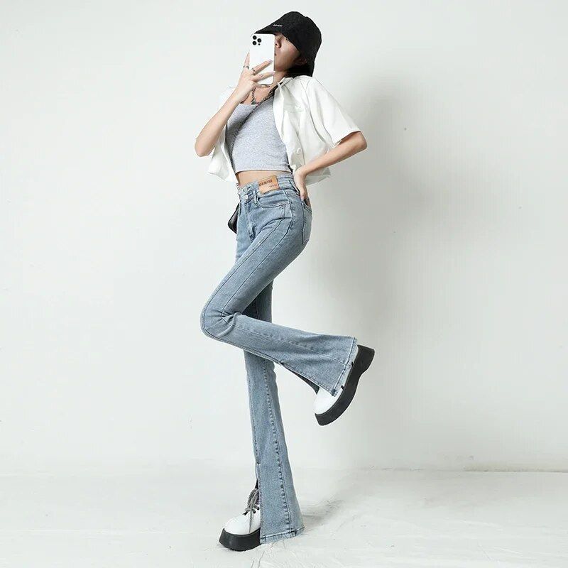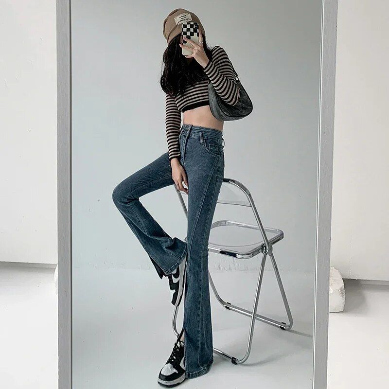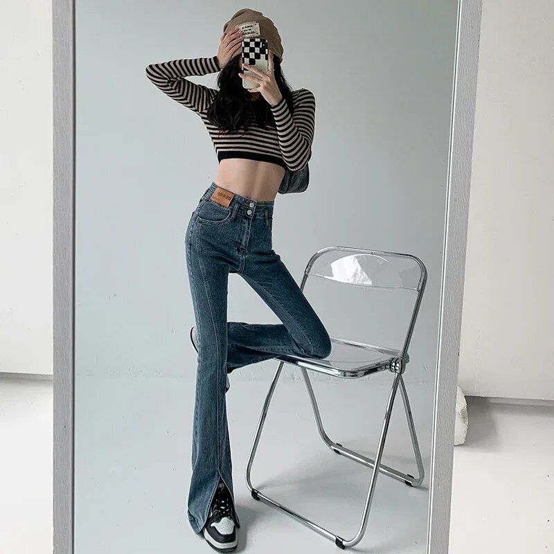Y2K Aesthetic Flare Jeans – Low Waist Vintage Split Hem Denim
