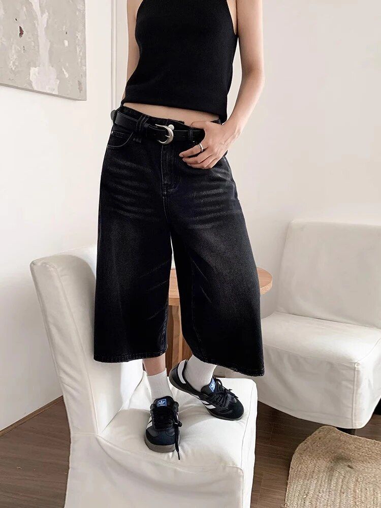 Y2K Vintage Denim Wide-Leg Shorts – Summer Harajuku Streetwear